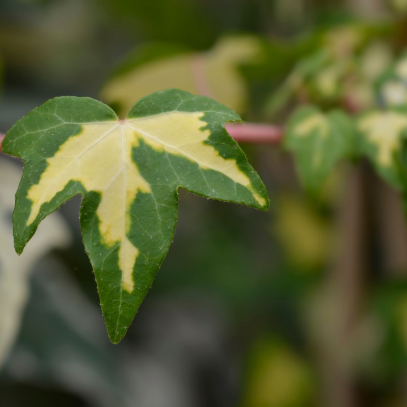 Frunzele au o dimensiune medie și se dezvoltă într-o formă lobată palmat pe măsură ce cresc. Au un aspect pestriț, foarte decorativ și se prezintă în nuanțe de verde închis, cu nuanțe care variază de la verde-crem la galben auriu spre mijlocul frunzei.