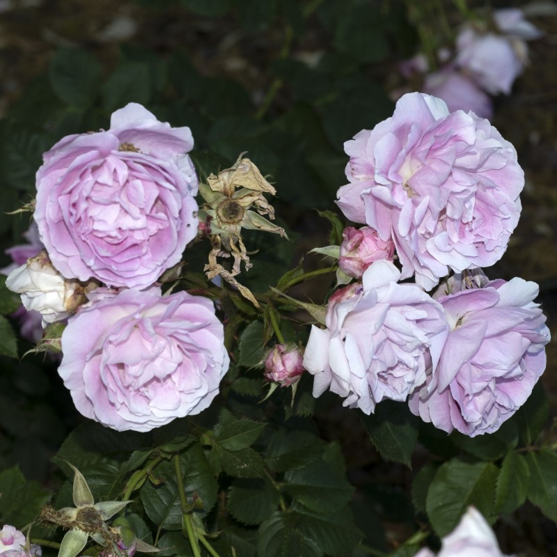 Are flori mari, semi-duble, parfumate, de culoare roz trandafiriu, cu nervuri mai întunecate și margini mai palide, cu staminele expuse atunci când sunt complet deschise. Florile sunt în formă de cupă liberă și de varză și înfloresc în rozete din vară până toamna.